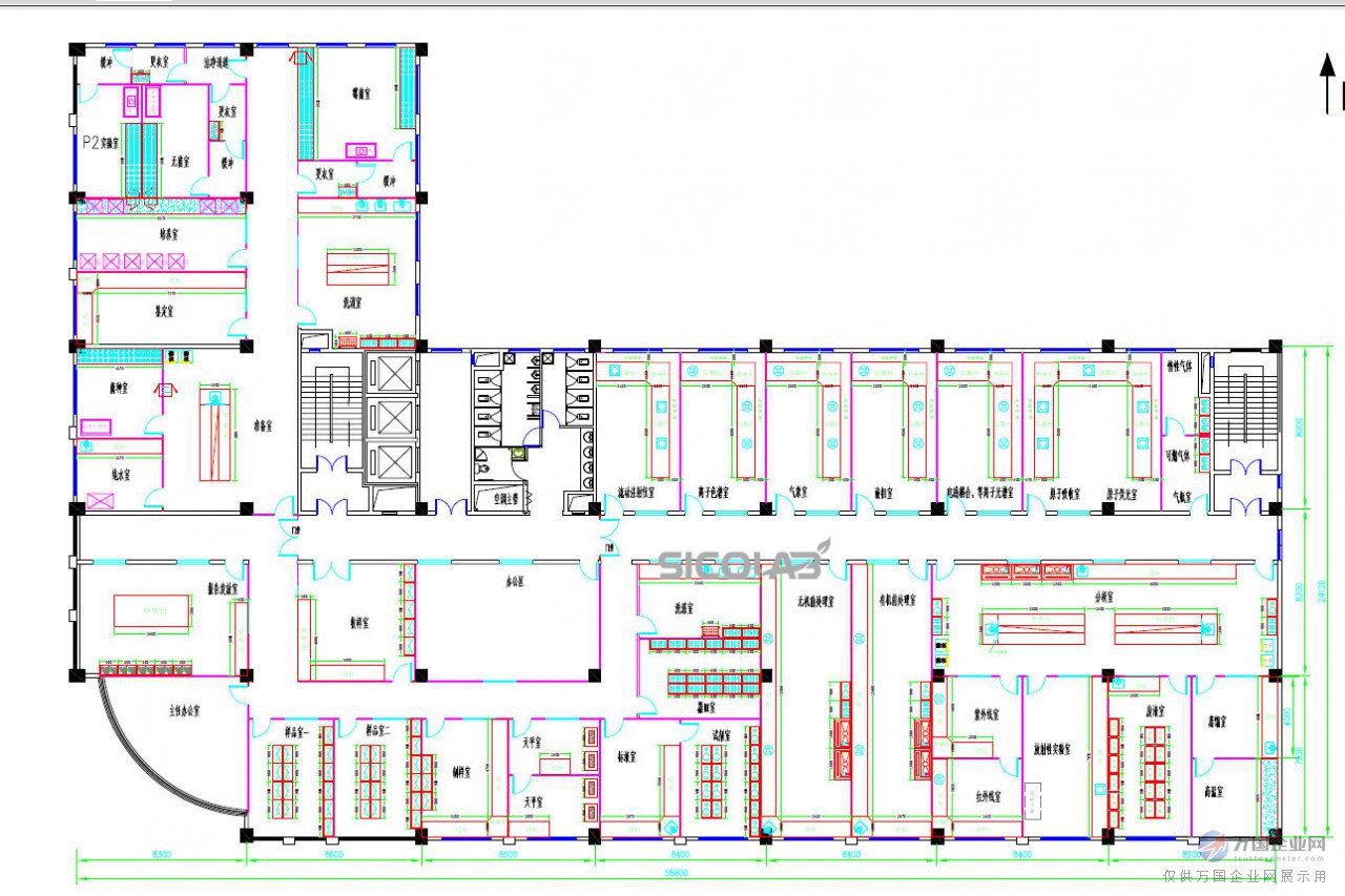 合理的建筑層高及凈高與樓宇能耗、有毒有害氣體擴散和人員舒適度密切相關,在建筑層高確定后應盡量將技術夾層上移以保證凈高凡有壓差、凈化的實驗室凈高宜2.5-2.7m,其余實驗室凈高宜2.7-3.0m,在設計圖紙上一定要求其標出凈高。